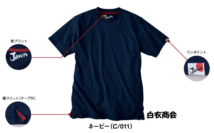 JawinシリーズのTシャツです。綿50%・ポリエステル50%の吸汗・速乾素材を使用しています。